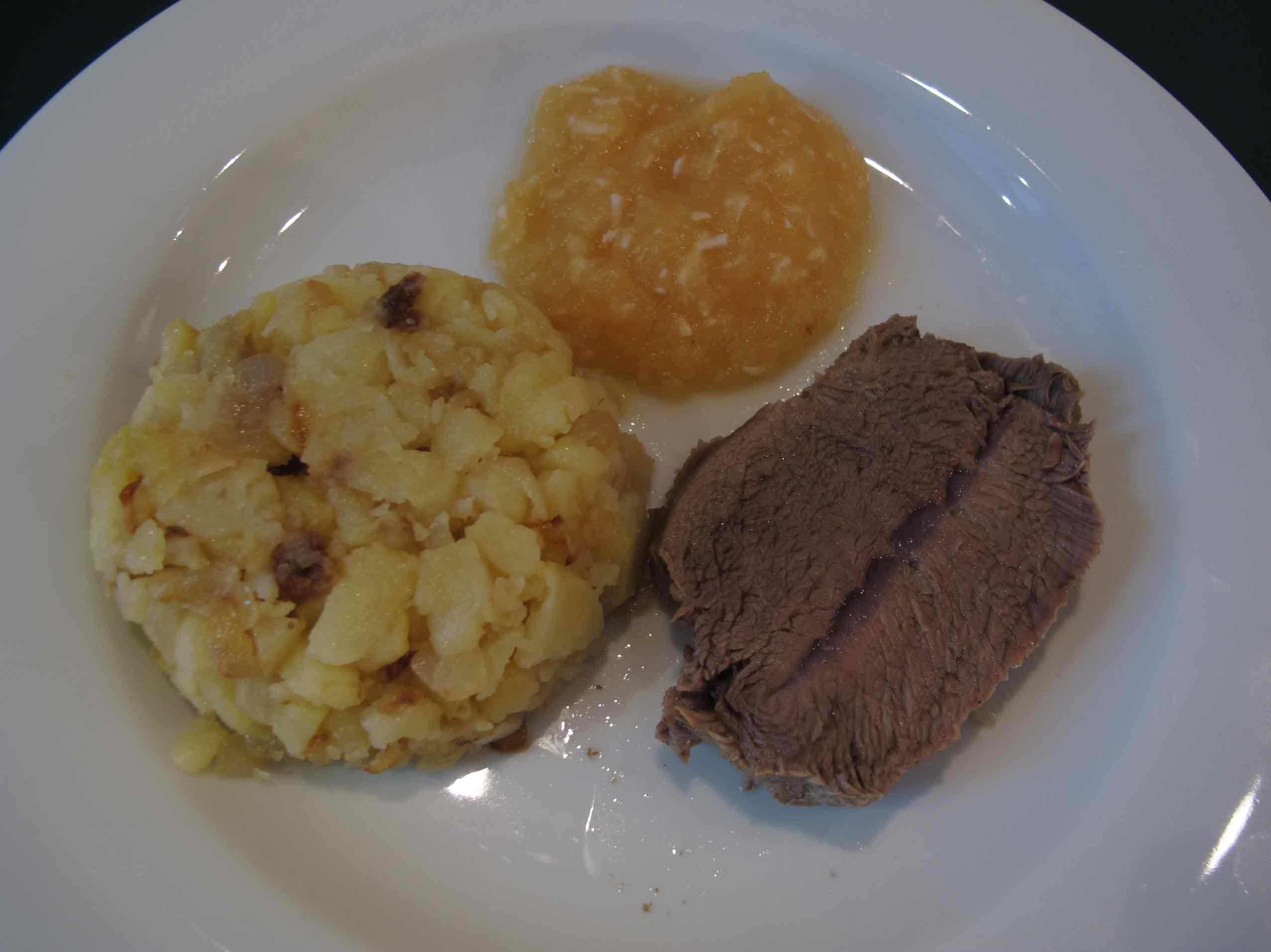 - Fleisch, nämlich gekochtes Schulterscherzl mit Apfelkren (gut gegen Verkühlung