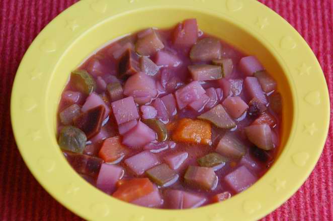 Bei mir gibt es heute Gemüse-Restesuppe mit Linsen.