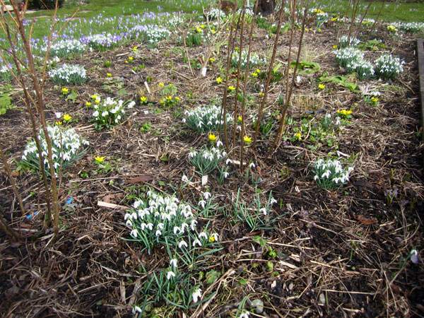 ...wunderschön, das Beet mit der anschließenden Krokus-Wiese, Blauaugenwels.