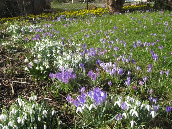 ...wunderschön, das Beet mit der anschließenden Krokus-Wiese, Blauaugenwels.