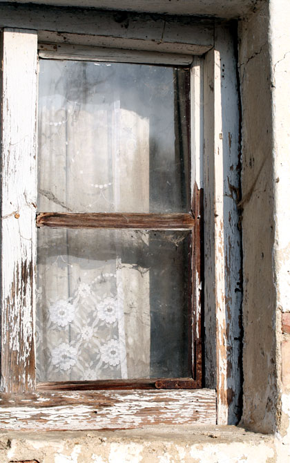 An den Fenstern hingen noch vergammelte Vorhänge