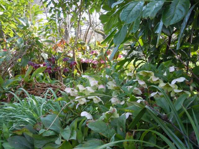 ...Wenn man die Helleboren nicht jätet, wachsen sie ganz dicht zusammen. Geplant war, die trüben Farben auszustechen. Nunja, wenn man nicht dazu kommt...