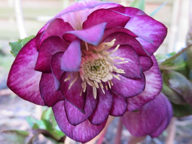 Das zweite Foto zeigt eine Blüte im Laufe der Saison. Als ich heute fotografiert habe dachte ich zunächst, ich hätte den Sämling mit dem daneben stehenden anemonenblütigen Sämling verwechselt. Aber es war korrekt, das erste Foto zeigt die letzte Blüte an dem Stiel.