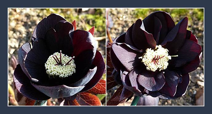 Die Pflanze habe ich schon seit 3 Jahre, war immer wieder von Bothrytis befallen und musste jedes Jahr was abschneiden. Der ursprüngliche mittlere Trieb blüht ganz normal (single black) , die Blüten bie zwei neue Triebe (rechts und links) sind halbgefüllt
