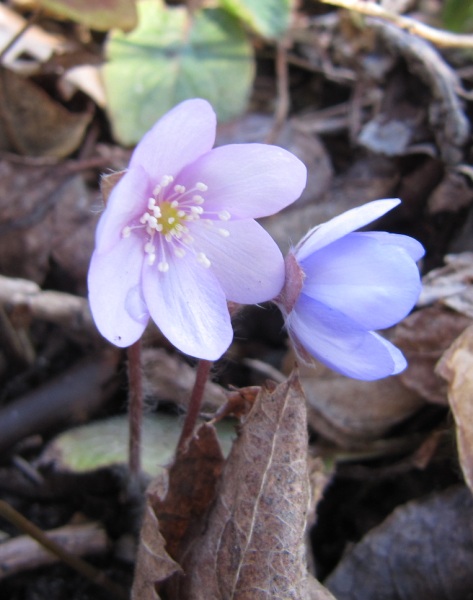 Hepatica transsilvanica Eisvogel breitet sich entlang dieser Beetkanteaus, direkt am Weg zur Haustür.