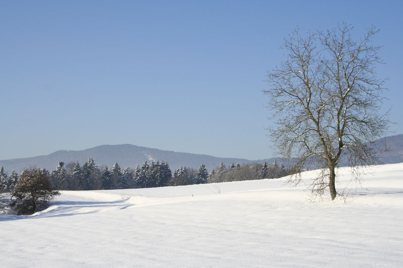 Ich habe heute einen Spaziergang hinter mir, der mir hoffentlich eine Lehre war. Erst habe ich die "Rolling Hills" des Bayerischen Waldes fotografiert, unsere sanfte hügelige Landschaft unter weiß-blauem Himmel