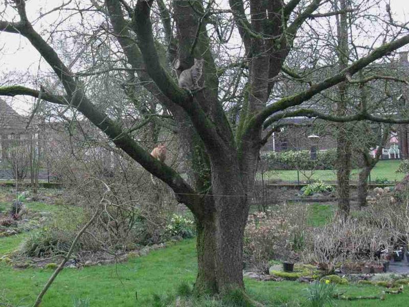 ich seh jetzt erst, dass das zwei Katzen sind da auf dem Kirschbaum. die eine paßt sich ja hervorragend der Stammfarbe an