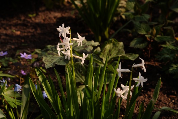 Nachdem die weißen Hyazinthen von Partisanengärtner hier wachsen und blühen, ist eine neue Hyazinthe aufgetaucht, die ein Kind der beiden wilden sein muss.