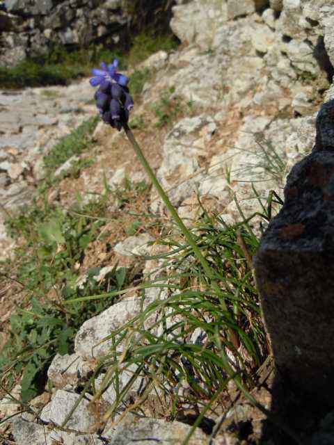 Und die Dritte:Muscari. Diese Muscari wuchsen sowohl in den Trockenmauern, als auch im Gras. Sie waren nicht sehr hoch (nicht so, wie ich das von den Wucherteilen im Garten kenne)Ich vermute, Muscari neglectum?