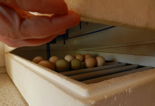 Der Brutautomat geht seit Jahren gut. Ich hatte ihn damals preiswert bei ebay geschossen und nur in ein neues digitales Brutthermometer investiert. Wenn es nach Plan geht, müssten am 24.4. 10 Seidis schlüpfen.Nina, gib's zu, du hast den tagelang nichts leckeres zufressen gegeben, nur damit sie dir so hinterher laufen und mich neidisch machen.