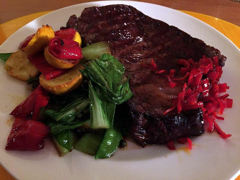 Das ist fast unwirklich schönein nachtrag: entrecôte mit asia-gemüse