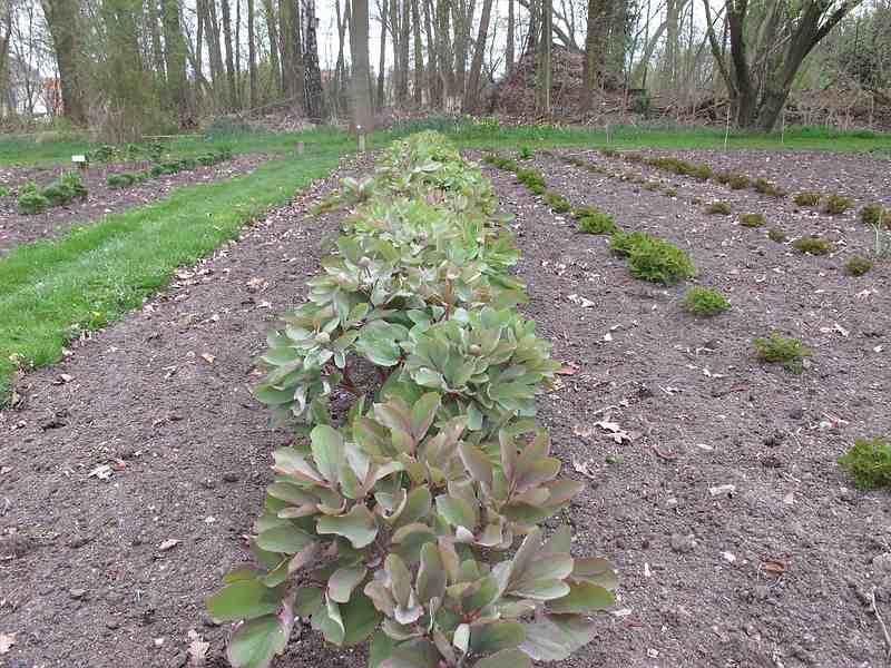 Die vor drei Jahren gepflanzten Sämlinge von Paeonia mlokosewitschii werden in diesem Jahr zum ersten Mal größtenteils blühen.