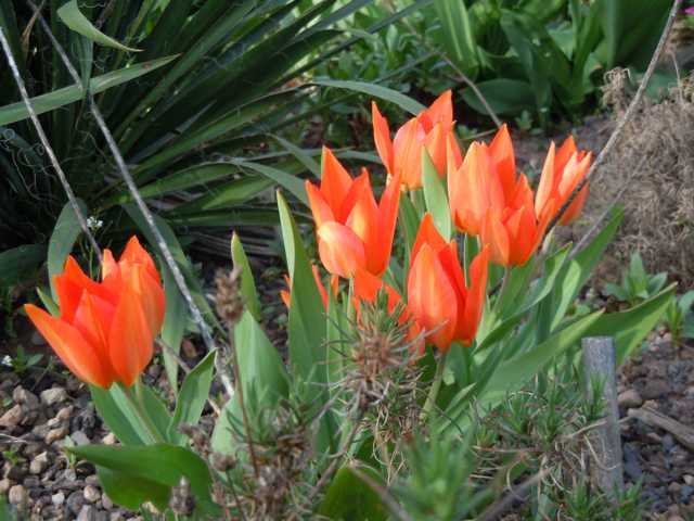 Schei. Boden, Schei. Farbe. Damit muss man bei Tulpen leben 8)Ich lebe nun mit den Tulpen, die bei mir wollen. Und nicht mit denen, die ich will :-\Tulipa praestans geht gut auf meinem schweren Boden. Und sie kommt immer wieder und vermehrt sich :DTulipa praestans "Van Tubergens Variety"