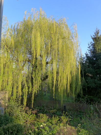 9,5° C, Sonne, wolkenlos, unangenehmer Ostwind.Tiefwert war -1,1° C in 2m gemessen. Am Boden bestimmt noch 2 - 3° kälter. Es war wieder alles mit Reif überzogen, die Autoscheiben gefroren. Die Magnolia soulangiana hat an den unteren Zweigen ein paar braune Blütenblätter bekommen.