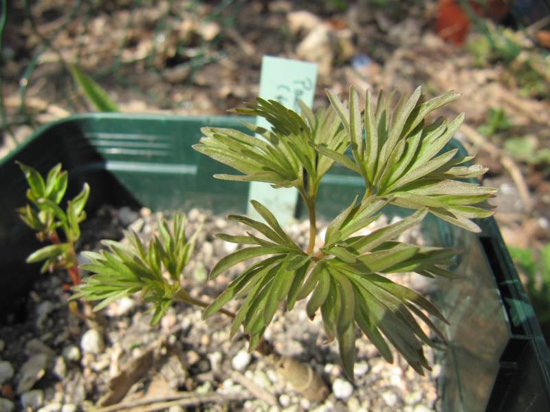 Jetzt muss ich doch auch fragen. Vor ein paar Jahren habe ich Samen bekommen (Wildsammlung), die als Paeonia lithophila (tenuifolia) bezeichnet waren. Das sind zwei der Pflanzen. Scheint auch nicht zu stimmen, oder?