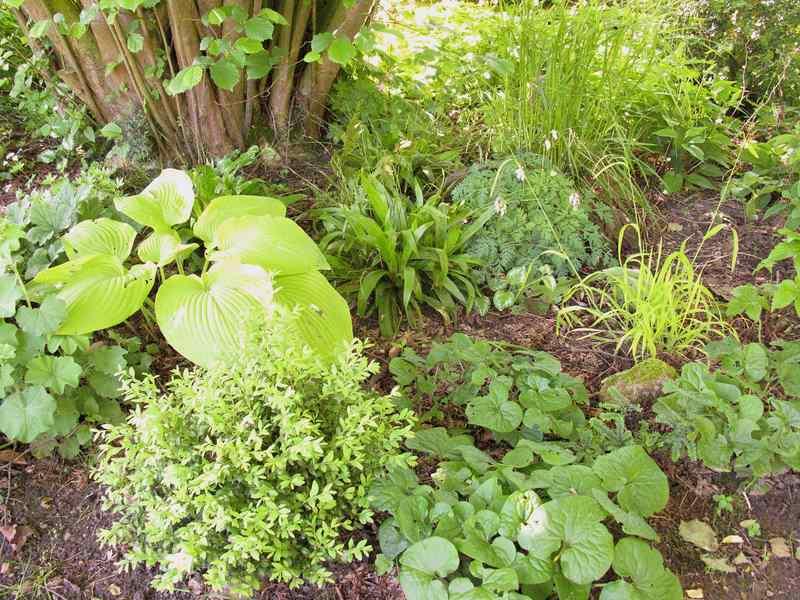 Den geringen Pflegeaufwand in solch "waldigen" Beeten kann ich bestätigen.Hier noch zwei Variationen in "Gelb" aus dem Trollgarten.Carex elata 'Golden Bowles', Heuchera 'Lime Rickey' und Hydrangea serrata 'Golden Sunlight'.
