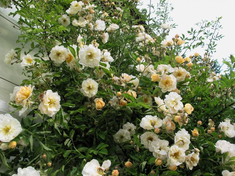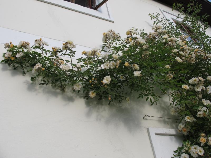 Goldfinch ist ein üppiges, wuchskräftiges Monster, das sich gut leiten läßt, 6 Meter schafft sie locker, muß allerdings bisweilen gezähmt werden. Vor allem auch ist sie wunderschön und mit ihrem Honigduft ein Bienenmagnet. Vielleicht helfen dir die Bilder weiter:
