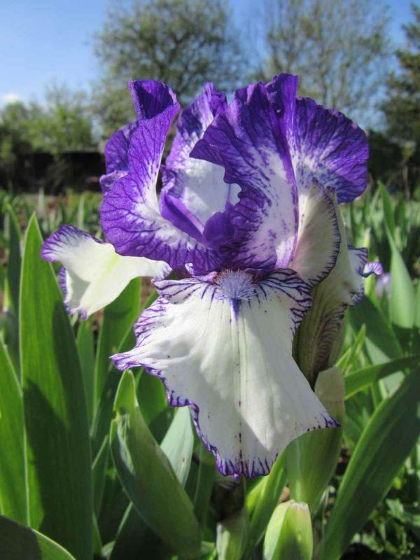 Heuer neu - die Kombi funktioniert noch nicht perfekt - zwischen der gelben April Accent im Hintergrund und Blue Denim sollte noch eine gelbe mit hellblauem Bart blühen; die will aber heuer noch nicht.LG
