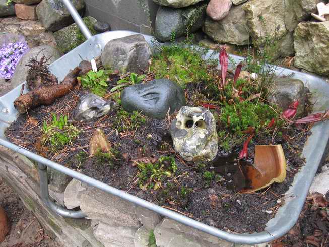 ... witzig übrigens die Schubkarre als Moorbeet. Musste sie zuerst in der fertigen Anlage suchen... (nehme wenigstens an, dass es ein Moorbeet ist)