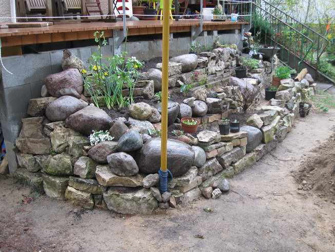 Hallo Quendula, Kompliment für dein Steinterassenbeet! ich finde es sehr schön!Heute war Gartenfaultag: nur ein paar Samen verstreut (Jungfer im Grünen und Schopfsalbei, dazu noch ein paar gefundene staubfeine Mohnsamen aus dem Garten meiner Schwester). Ein paar Findelkinder eingepflanzt: Hepatica-Sämlinge, eine hübsche Allerweltsprimel, eine Aster, eine rotlaubige Heuchera und eine mir unbekannte Pflanze (Laub erinnert mich spontan an Johanniskraut). Die letzten Drei habe ich wirklich am Straßenrand gefunden. Dort hatten auch in den letzten Jahren schon die Bewohner eines Einfamilienhauses offensichtlich überzählige Stauden in Töpfe gepflanzt und zum Mitnehmen für jedermann an die Straße gestellt.