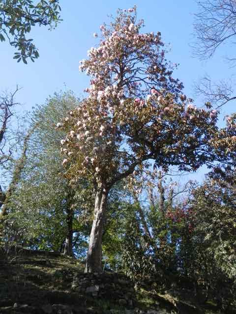 Im Park der Villa Taranto am Lago Maggiore gibt es mehrere so große Rh. arboreum , so weit sie nicht dem damaligen Sturm zum Opfer gefallen sind - hier ein weißrosa blühendes Exemplar: