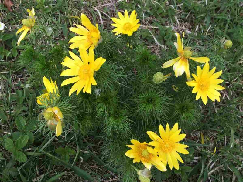 Auf den Hängen mit nur wenig Bewuchs Adonisröschen.