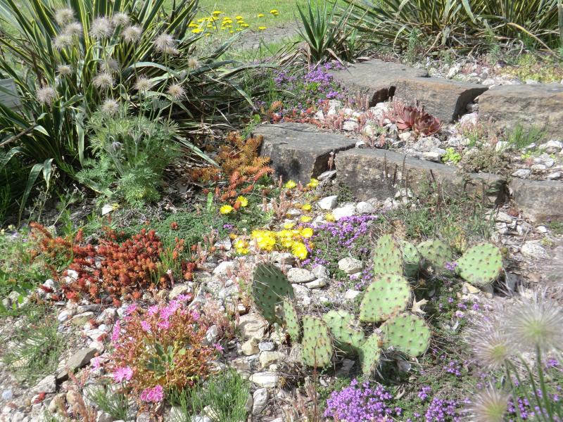 Leider hatte ich mir unter dem Begriff "Schule" und "Lehrgarten" irgendwie eine größere Vielfalt und offensivere Anlage vorgestellt. Ein paar Ecken, wie dieser Steingartenbereich, sahen auch noch gut aus :).