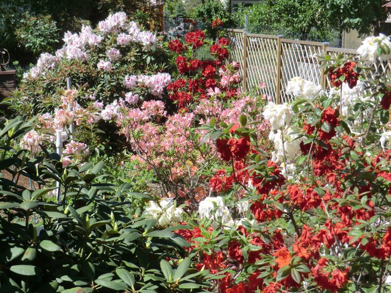 Rhododendron und Azalee ist hier Programm. Leider durch die heißen Tage schon nicht mehr so frisch blühend, aber immer noch farbgewaltig :D.