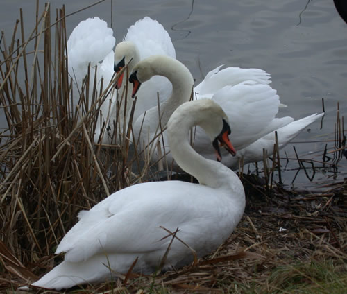 Zutraulich wie fast überall sind die Schwäne, die bereits Hochzeitsvorbereitungen treffen.