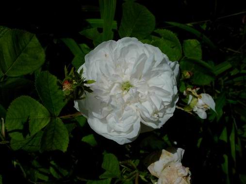 ...also bevor ich wegen diesem ...äh...wunderschönem wetter und dieser tollen jahreszeit völlig abdrehe und vielleicht noch eine abneigung gegen die farbe weiss entwickle...dachte ich, man könne vielleicht hier ein paar schöne rosen in dieser farbe zusammenstellen...das soll uns daran erinnern, wie schön weiss sein kann :Dund die idee von einem garten ganz in weiss...hat doch was, no?ich beginne mit einer margaret merill aus meinem garten: weiss, gesund, stark duftend, herrlicher zitronenduft: eine tolle rose!!!! (hier mit fleischbeilage!