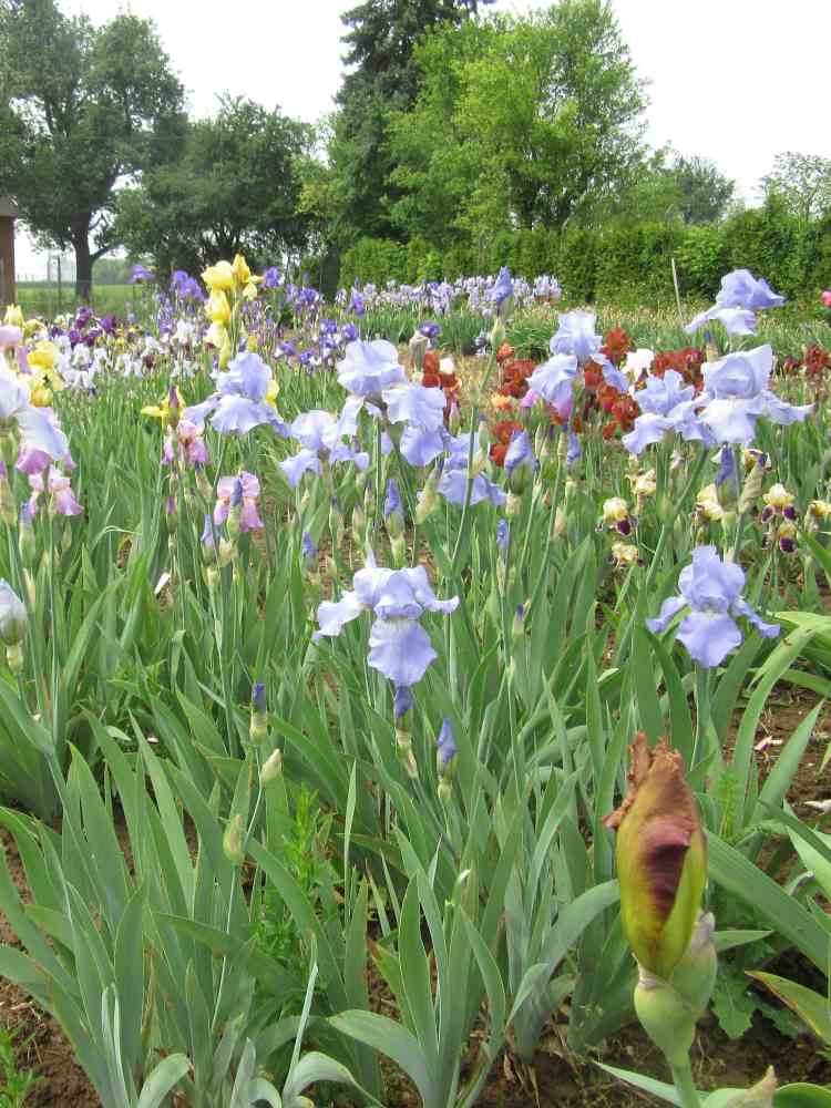:Din diesem jahr muss ich nun endlich meine iris neu aufpflanzen, auf das gleiche beet, und ich habe keine ahnung, wie ich den hiesigen drecksversagerboden aufbessern soll, der bestimmt schon die hälfte aller ursprünglich gepflanzten sorten auf dem gewissen hat und heuer nur noch ein knappes drittel oder viertel blühen lässt... wahrscheinlich werde ich allein durch das ausmisten weitere sorten verlieren, die nur noch in winzrhizomen erhalten sind. :-\das blühen beginnt hier gerade erst, seit ein paar tagen schon bläut 'morgendämmerung' und diese frühe purpurviolette halbwilde, deren namen ich gerade verdrängt habe, heute war da auch was blödbräunliches, vielleicht 'indian chief'. ich sollte mal meinen pflanzplan von 2007 rauskramen...