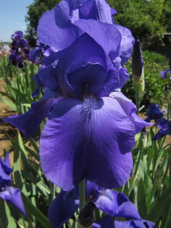 Das tiefe blaue Veilchenblauviolett von `Dusky Challenger´, Schreiner, 1986, bekomme ich einfach nicht aufs Bild, ausgerechnet die am meisten zerzauste Blüte zeigt es am Ehesten...Riesenblüten an relativ (!) kurzen Stielen und trotzdem stimmen die Proportionen!