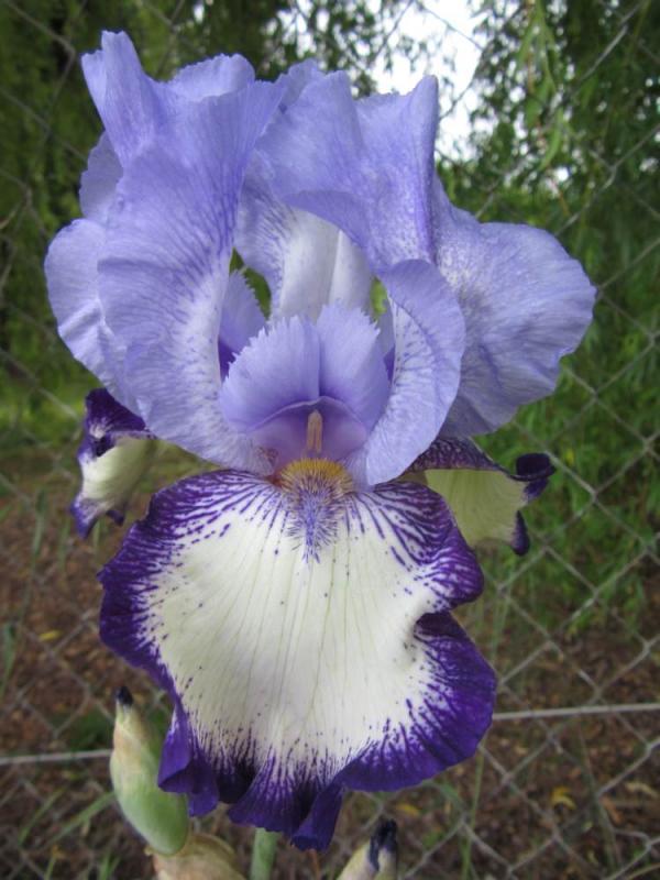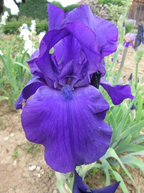 Das tiefe blaue Veilchenblauviolett von `Dusky Challenger´, Schreiner, 1986, bekomme ich einfach nicht aufs Bild, ausgerechnet die am meisten zerzauste Blüte zeigt es am Ehesten...Riesenblüten an relativ (!) kurzen Stielen und trotzdem stimmen die Proportionen!