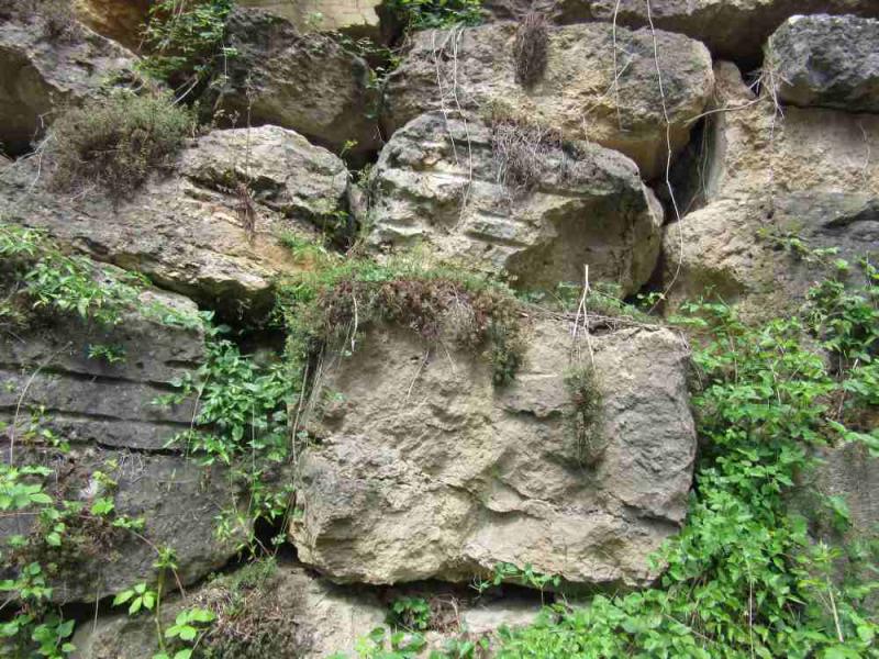 In nicht allzu weiter Entfernung wurde der so genannte "Cannstatter Travertin" gebrochen, unten eine Schauwand nahe der beiden ehemaligen Steinbrüche, welche übrigens zu einem Gutteil nicht in Stuttgart-Bad Cannstatt, sondern auf der Fläche des benachbarten Stuttgart-Münsters liegen.Lösslehmabbruchkante