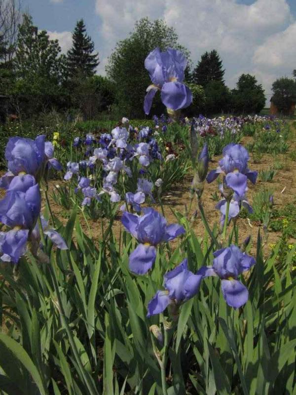 Wieder eine Namenlose, sie gleicht in Höhe und Blütenfarbe Iris pallida, hat aber doppelt so große Blüten. Von der Eleganz der Art verliert sie trotzdem nichts!