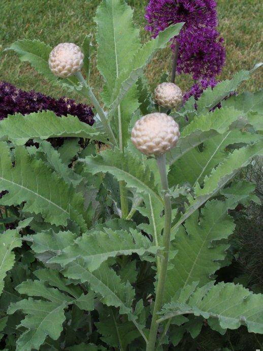 Nein, nicht das Allium sondern die Pflanze mit den silbrig-glänzenden Knospen! Ich vermute Centaurea. Wenn ja, welche?