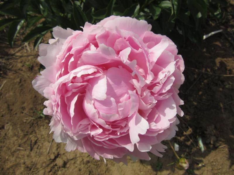 `Shirley Temple´, Smirnow vor 1948. Ziemlich standfest, relativ niedrig, die Blüten öffnen sich ganz hellrosa und werden noch heller, bis hin zum strahlenden Weiß. Die Sorte soll ein Nachkomme einer Kreuzung aus `Mme. E. Doriat´ und der bekannten `Festiva Maxima´ sein.
