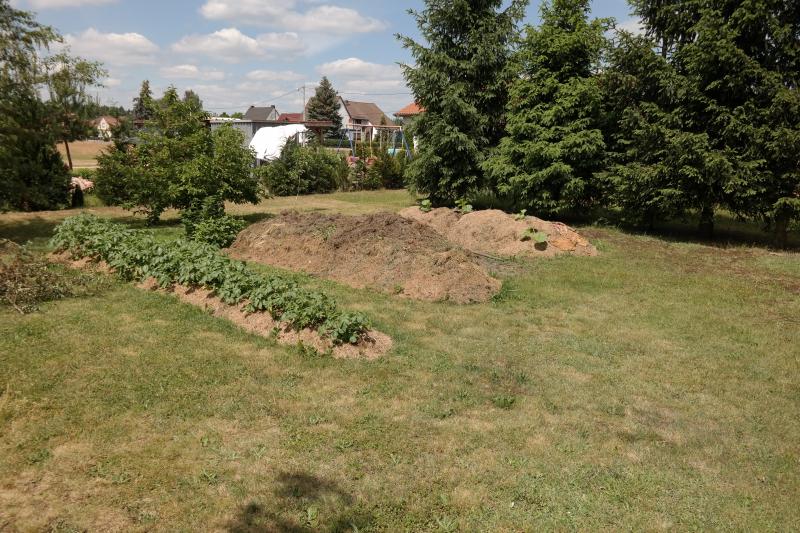 6. Ein Teil der Kompostwirtschaft incl. Kürbissen und Kartoffeln (da sollen im Herbst Beerensträucher hin)