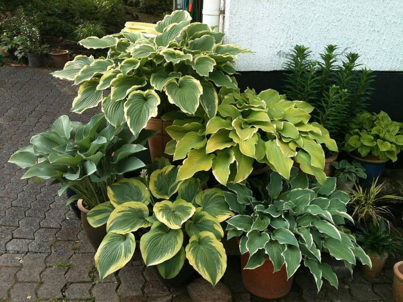 Endlich habe ich es geschafft meine Hostatöpfe dekorativ so aufzustellen, dass die die Mülltonnen verdecken