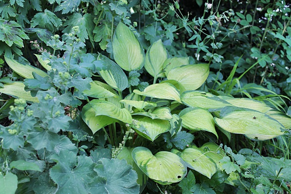 Wie alt ist denn die Sum and Substance? Meine steht seit 2 Jahren am Platz, vorher ein Jahr an anderer Stelle, hat kleinere Blätter als die Royal Standard und ist vielleicht 30 cm hoch. Außerdem ist ein Blatt verbrutzelt. Die Royal Standards sind in diesem Jahr riesige Monster. Viele andere Hostas stehen auch sehr gut. Ich glaube, ich muss im Frühjahr einige teilen.
