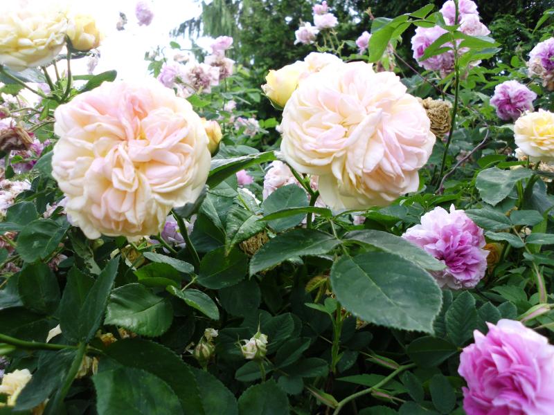 Wie hoch ist Deine Rose de Resht lubuli?rose de resht und im vordergund sorbet framboise.