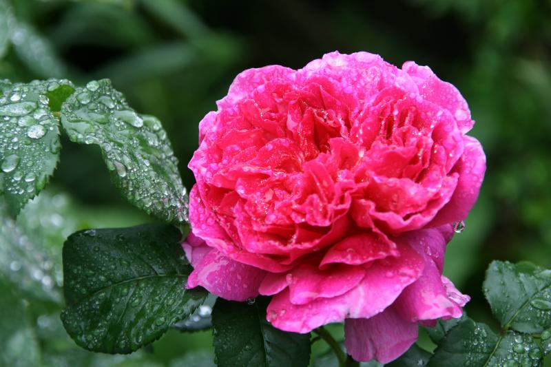 Wie hoch ist Deine Rose de Resht lubuli?rose de resht und im vordergund sorbet framboise.