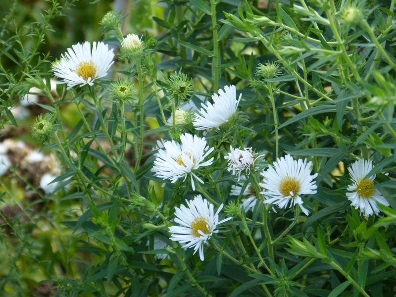 A. amellus könnte noch irgendwo im Unkraut stecken. 'October Skies' wächst unbeeindruckt. Die Rauhblätter haben aber auch hier schlanke Füße.