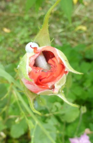 Sieht fast nach Kohlweisling aus.Aber die kriecht/frisst sich geradein die Knospe