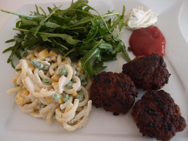 das sieht alles lecker aus :Dbei uns gabs fleischküchle mit nudelsalat und rucola aus dem garten