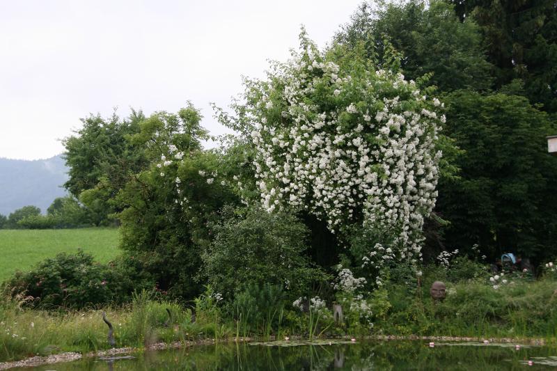 Wunderschöne Rosenbilder und Gartenstimmungen, Noodie!Deine gefüllte wichuraiana ist sehr attraktiv, Lord Waldemoor! Kennst Du einen Sortennamen?Eine in Form und Farbe etwas ungewöhnlichere Kletterrose in meinem Garten ist ´Mosel´.