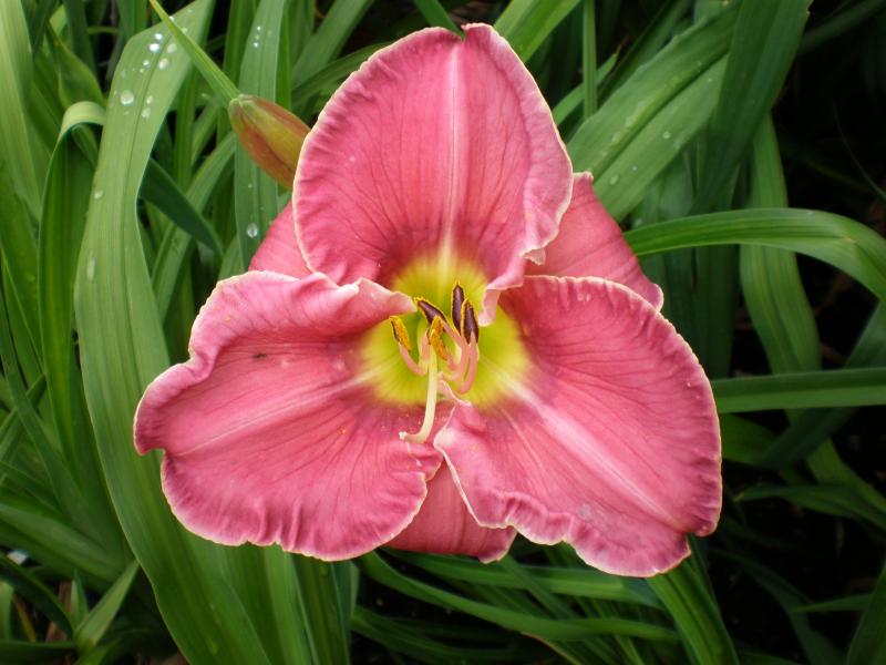Und wenn ich dir jetzt sage, dass der in Wirklichkeit eine Farbe hat wie diese gaaanz dunklen dicken Kirschen....?(meine Kamera spielt da leider nicht mit)Also für gewöhnlich hast du ja einen völlig anderen Tagliliengeschmack als ich, Rheinmaid, aber DER Sämling ist toll! Daumen hoch!Heute Nacht scheint es wieder viel geregnet zu haben, aber dieser neue war gegen Mittag wirklich gut geöffnet