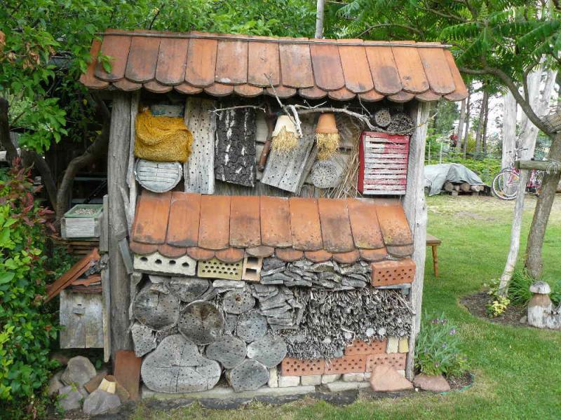 und das Insektenhotel. Einzelne Elemente der Gestaltung, also Mäuerchen etc. finde ich toll - insgesamt ist es mir aber zu viel. Das große Staudenbeet, sehr üppig mit dem kleinen Weidenzaun, das gefällt mir auch sehr gut.Danke für auch diese Eindrücke!