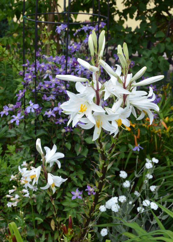 auf dem leider in der Mittagssonne total überstrahlten Foto kann man nicht erkennen, wie riesig Campanula latifolia dieses Jahr ist. Jedenfalls eine tolle Blume, ich brauche mehr...