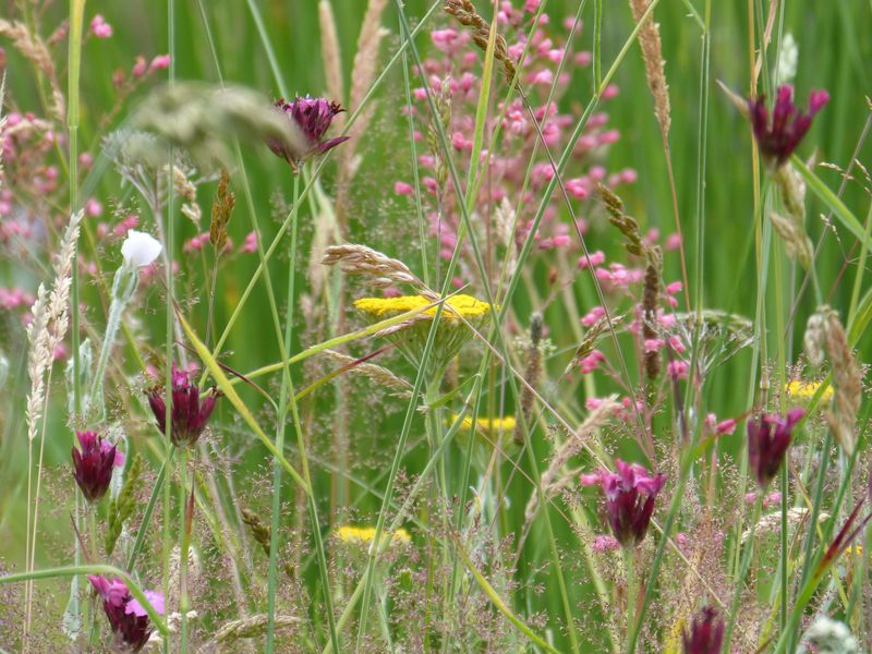 In dem Beet muss ich noch viel jäten, da dort vorher eine Wiese mit vielen Unkräutern war. Gepflanzt hatte ich die Gräser mit größeren Lücken, den Rest überlasse ich Gaura, Verbena, Lychnis und Konsorten.